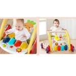 - Mânere și suport: Copilul poate folosi mânerele sau bara de sprijin pentru a se ridica și a începe să se deplaseze în siguranță.