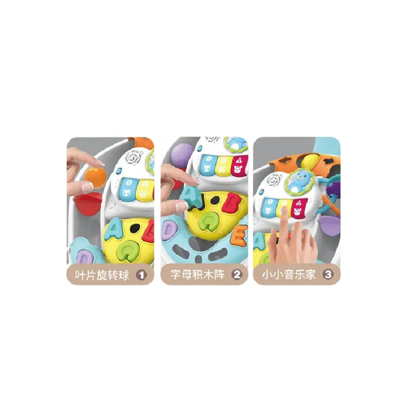 - Activități interactive: Antepremergătorul include un panou interactiv cu sunete, lumini și butoane, care încurajează copiii să exploreze, să apese butoanele și să învețe despre sunete, culori și cifre.