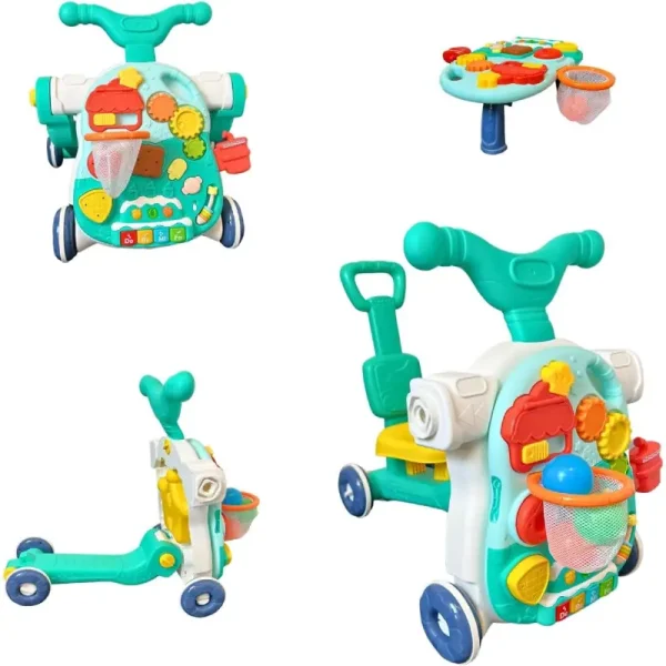 Această jucărie este multifunctionala. Dintr-un anteptremergator se transforma foarte usor intr-o masuta cu activitati interactive.