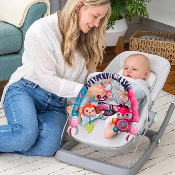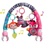 - Distracție în mișcare: Arcada poate fi folosita în timpul călătoriilor cu caruciorul pentru a menține bebelușii ocupați și fericiți în mișcare.