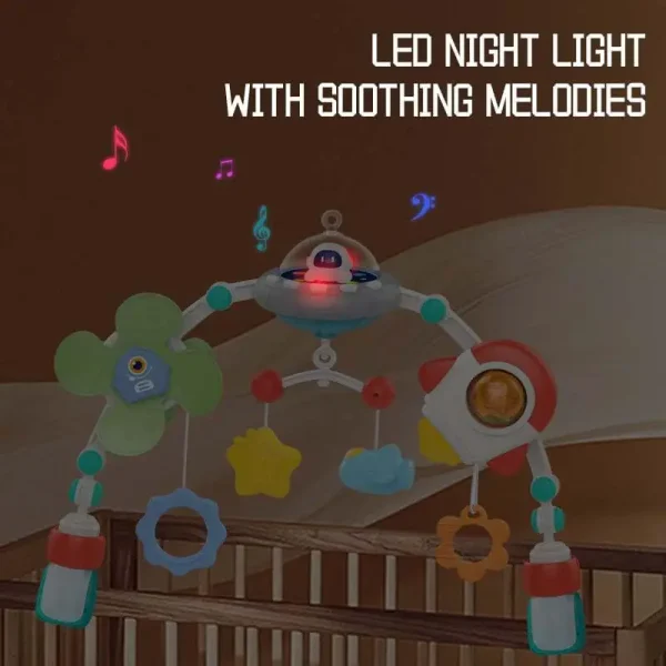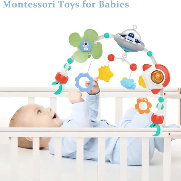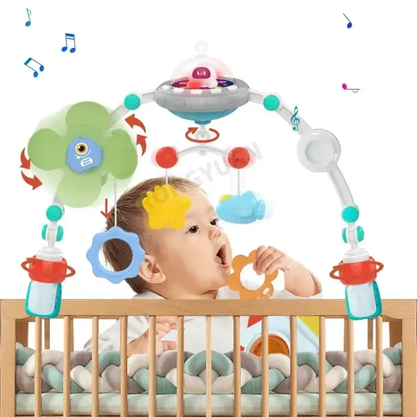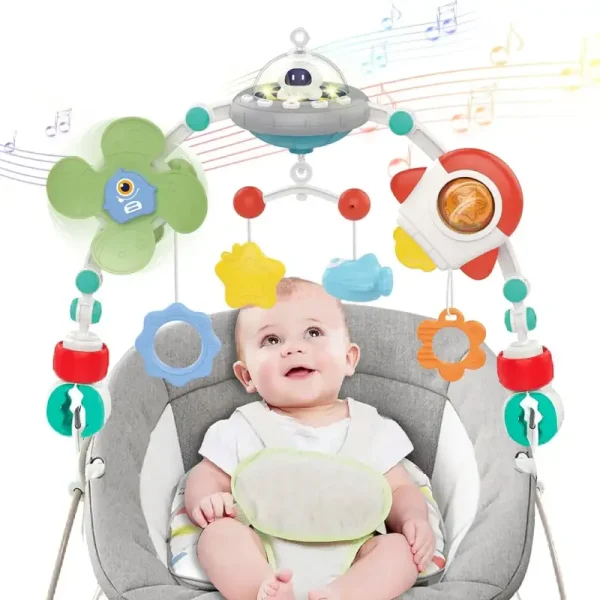 Transformă joaca micuțului tău într-o experiență captivantă și educativă cu această arcadă muzicală pentru bebeluși, inspirată din universul spațial!