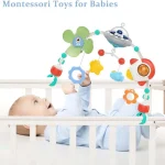 - Ușor de montat – Arcada poate fi atașată simplu de balansoar, pătuț sau chiar cărucior, oferindu-i micuțului un spațiu de joacă portabil, pe care îl poți folosi oriunde.