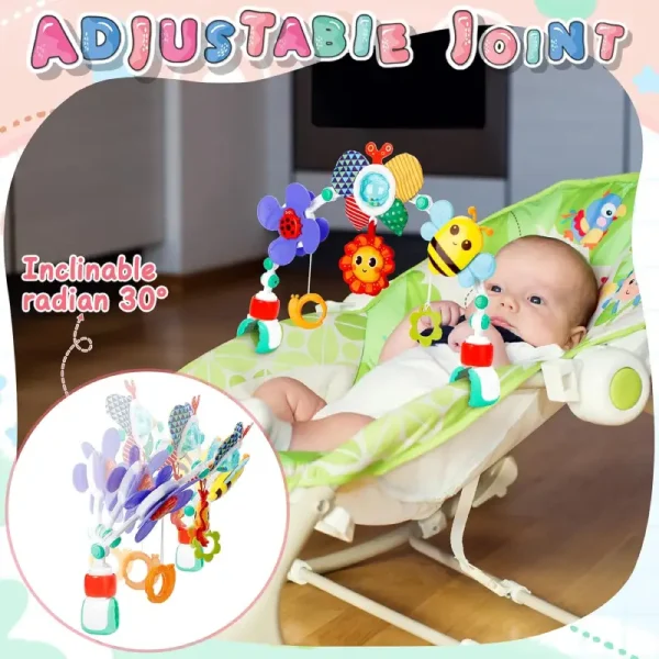 - Compatibilitate universală – Ușor de montat pe cărucior, pătuț sau scaun auto, oferindu-i micuțului distracție oriunde te-ai afla.