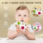 Jucăria oferă oportunități pentru explorare și descoperire, încurajând curiozitatea și spiritul de aventură al bebelușului.