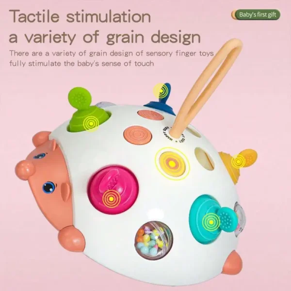 Ariciul roz încurajează explorarea tactilă și dezvoltarea abilităților motorii fine ale bebelușului tău.