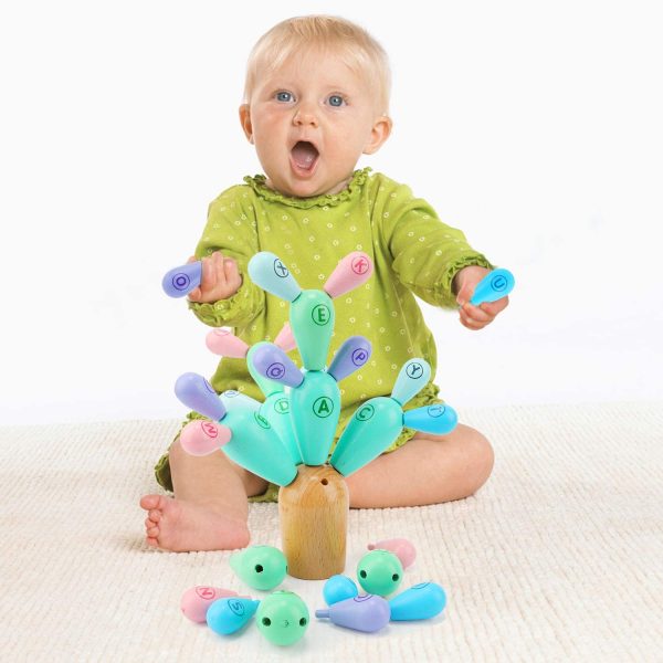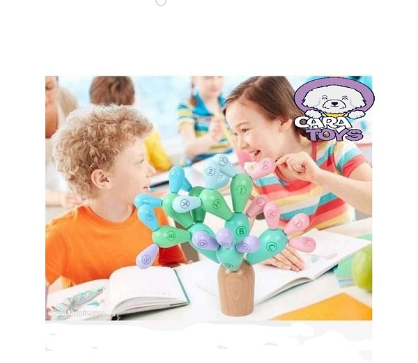 Literele sunt imprimate pe suprafața cactusului, iar părinții pot folosi jocuri pentru activitățile copiilor.