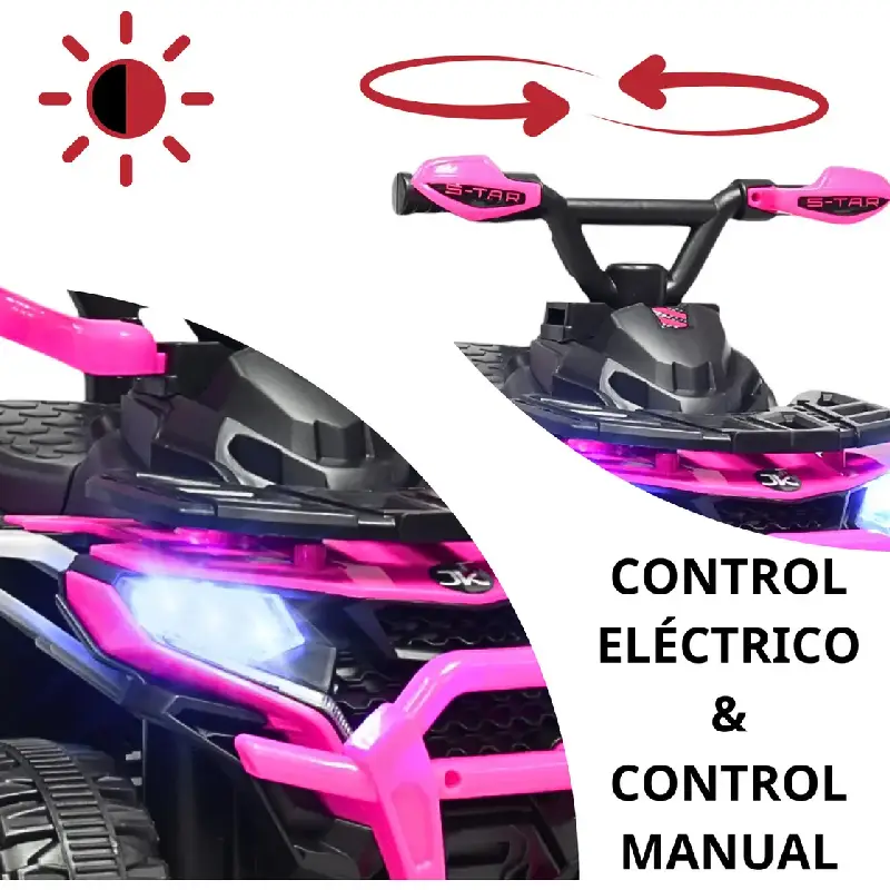 Descoperă aventura pe patru roți alături de acest ATV roz pentru copii, un ride-on solid și sigur, special conceput pentru micuțele energice!