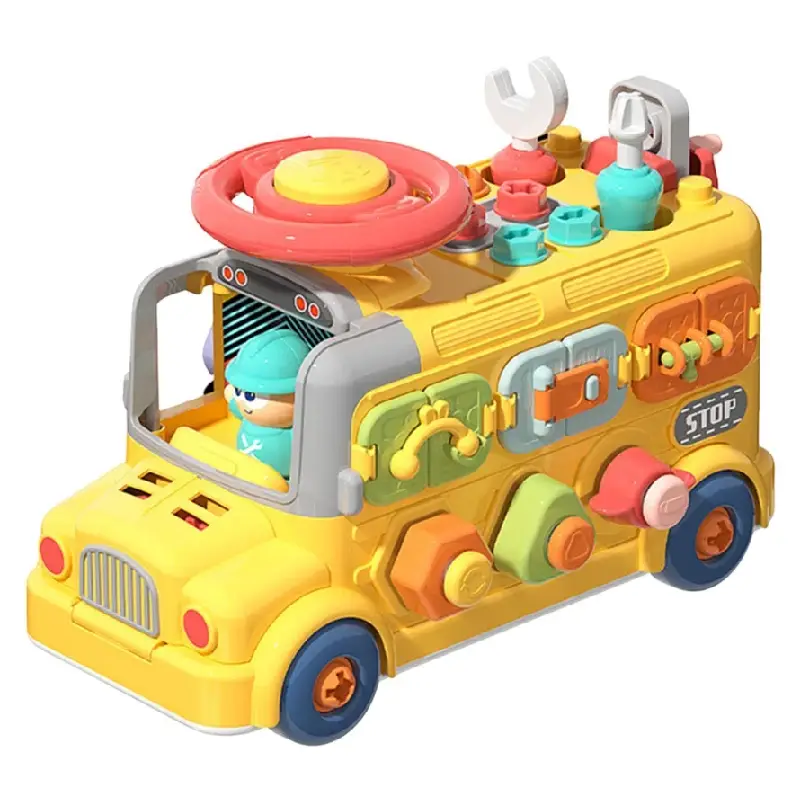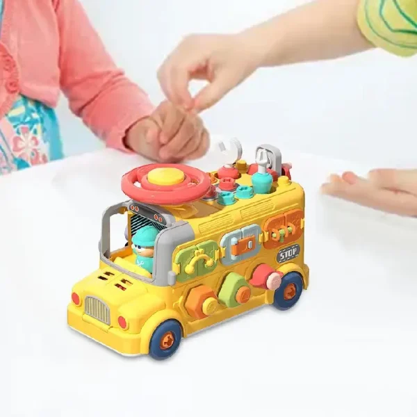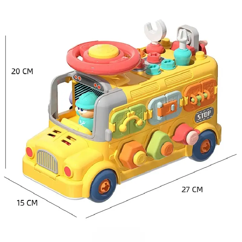 Autobuzul Montessori Interactiv este o jucărie educativă complexă, creată pentru a dezvolta îndemânarea, coordonarea mână-ochi și gândirea logică a copiilor prin joacă interactivă.