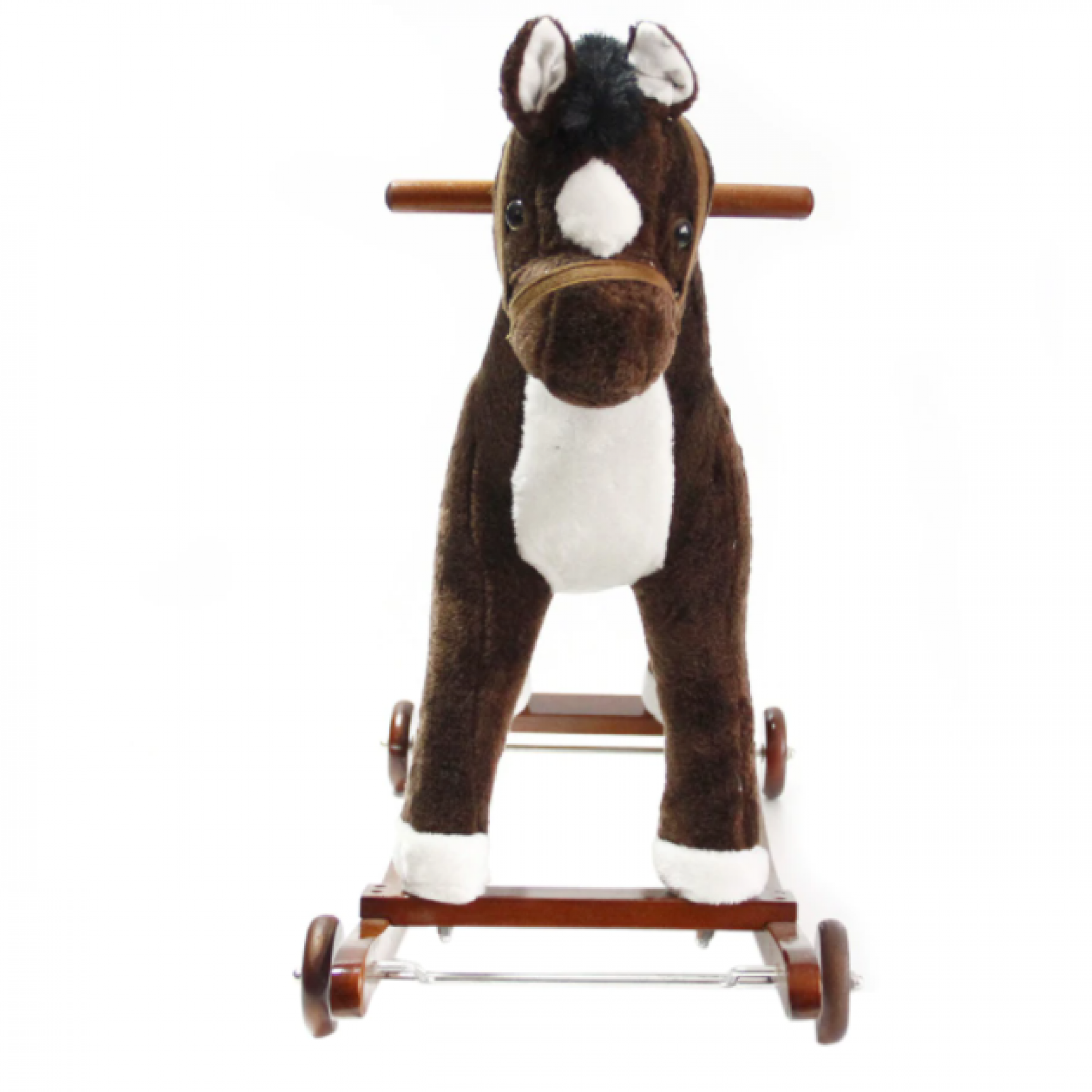Caracteristici Balansoar Calut Maro cu Roti si Sunete: