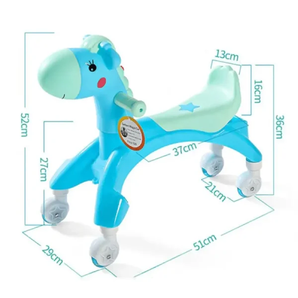 Descoperă balansoarul cu muzică, sanie și roți calut bleu!