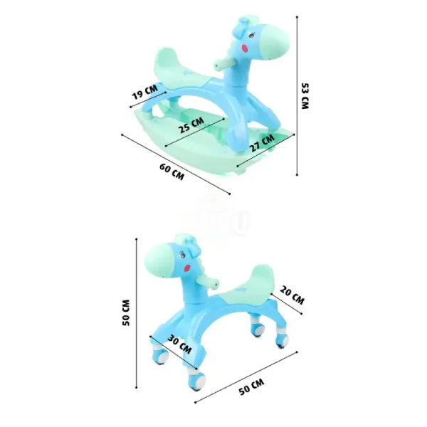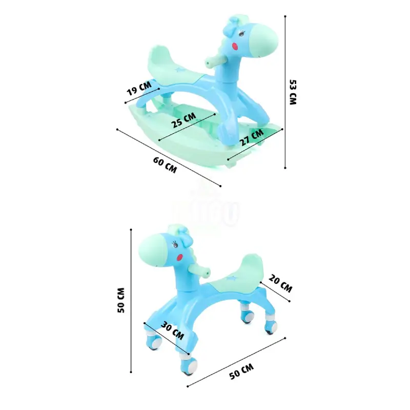 Balansoarul este versatil,functionand in doua moduri : balansoar si calut cu roti.