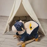 - Design adorabil în formă de căluț albastru cu buline albe: Un prieten de joacă simpatic și atractiv pentru copii.