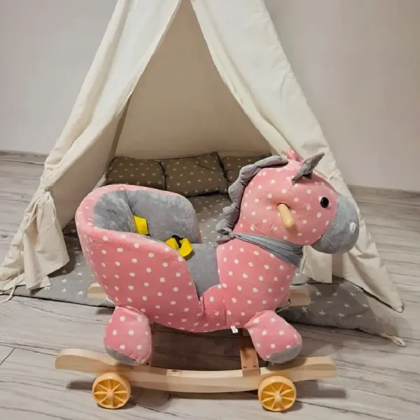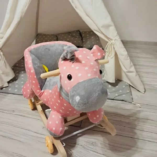 Balansoar cu Sanie si Roti Calut Roz Muzical – Distracție și confort pentru micuțul tău!