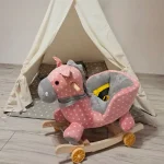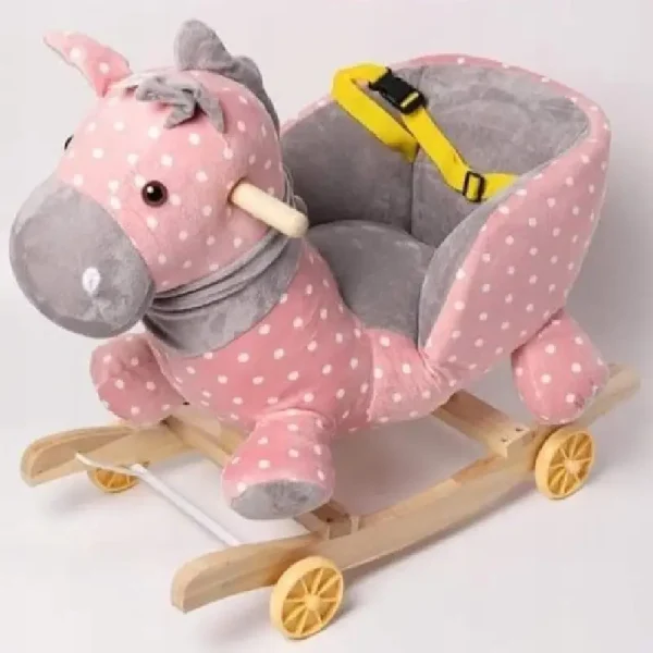 Oferă-i copilului tău ore de distracție și relaxare cu acest balansoar adorabil în formă de căluț roz cu buline albe.