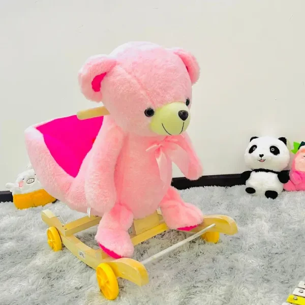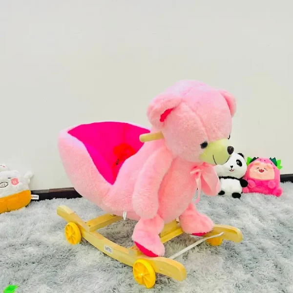Balansoar cu Sanie si Roti Ursulet Roz Muzical – Confort și distracție pentru micuțul tău!