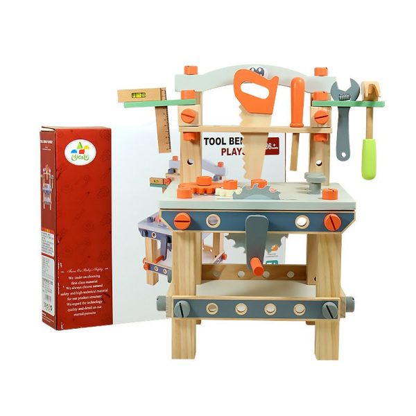 Jucarie Montessori Lemn Banc de Lucru cu Unelte este usor de asamblat si dezasamblat. Piesele pot fi folosite si independent. In partea de jos a bancului exista un raft pentru a depozita uneltele si accesoriile. Ajuta copiii sa isi dezvolte creativitatea. Jucaria este fabricata din lemn de buna calitate si are o suprafata neteda,fara striatii. Este un instrument ideal pentru dezvoltarea imaginatiei copiilor. De asemenea imbunatateste coordonarea ochi-mana. Jucaria Montessori stimuleaza motricitatea si incurajeaza jocul de rol. Deci,lasa-i pe copii sa se distreze si sa invete cum sa le foloseasca!