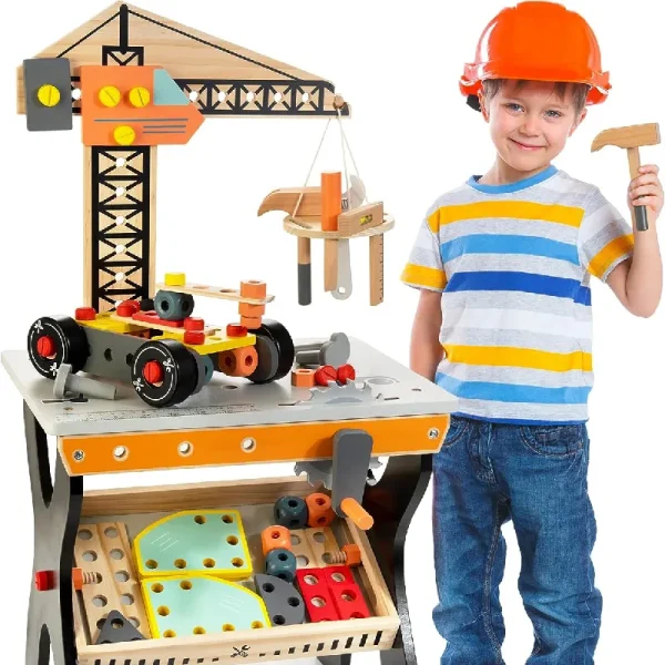 În concluzie, un banc de scule cu macara din lemn este o jucărie STEM Montessori care poate oferi o experiență educațională valoroasă copiilor.