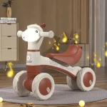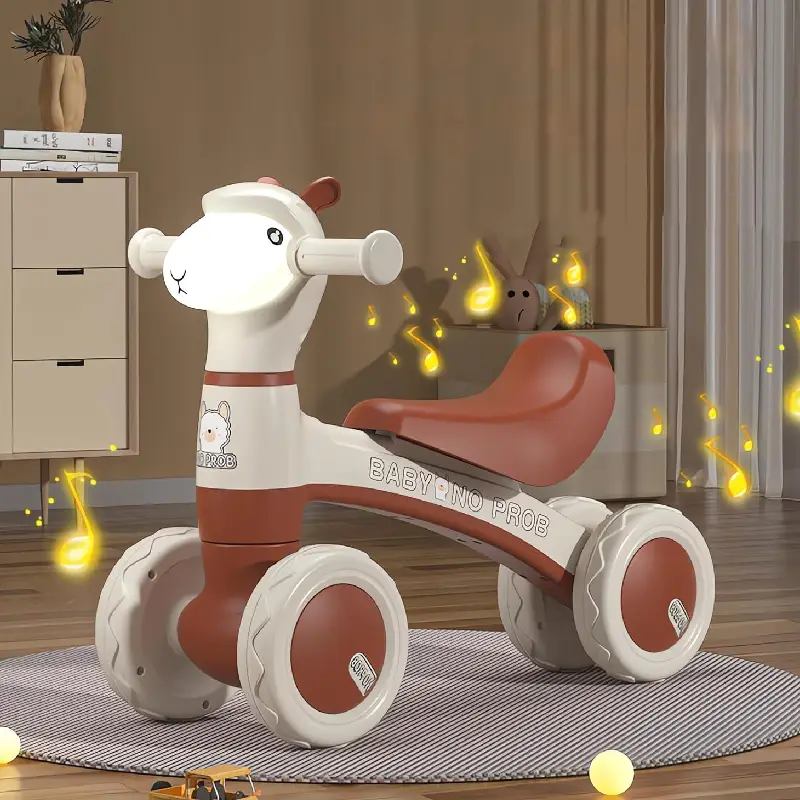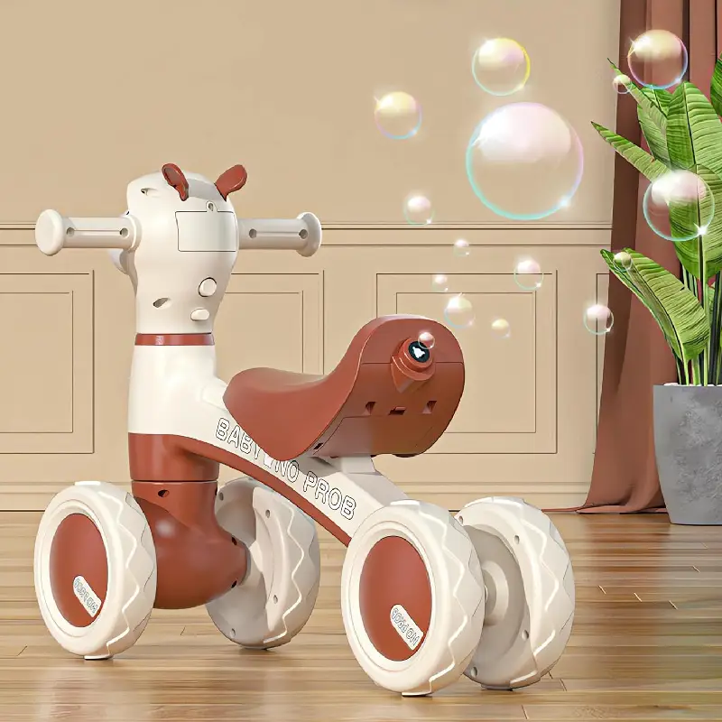 Bicicletă de Echilibru Maron cu Muzică și Baloane – Prima Aventură pe 4 Roți!