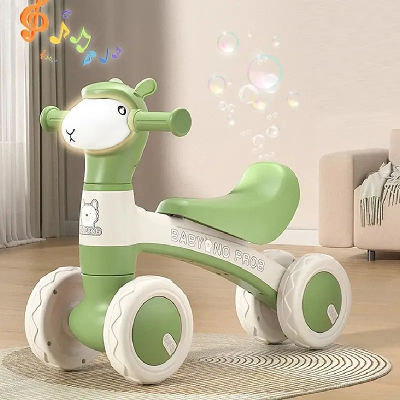 Bicicletă de Echilibru Verde cu Muzică și Baloane – Primele Aventuri în Lumea Mișcării!