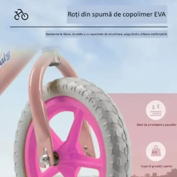 Descoperă aventura și libertatea pe două roți cu bicicleta roz fără pedale, perfectă pentru copiii dornici să exploreze lumea din jurul lor!