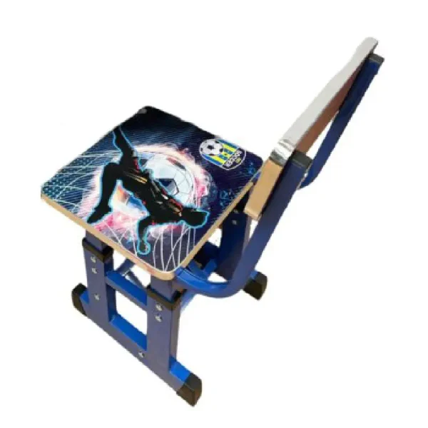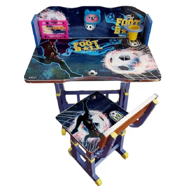 Acest set de birou și scaun pentru copii este ideal pentru micii fani ai fotbalului care își doresc un spațiu de învățare și joacă distractiv și funcțional.