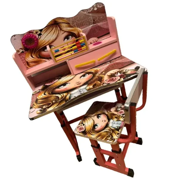 - Design Atrăgător și Jucăuș: Setul birou și scaunel este decorat cu desene și culori vesele, captivând atenția și stimulând creativitatea copilului tău în timpul activităților de studiu și joc.