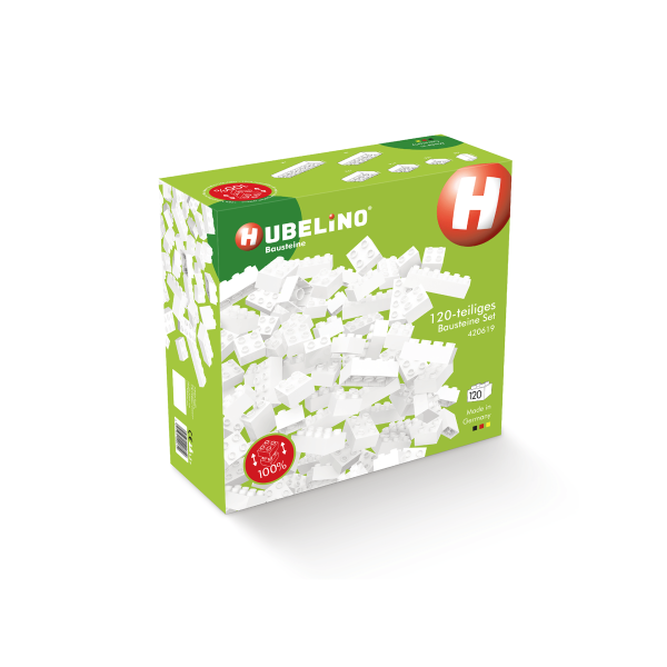 Toate cele 120 de parti si componente ale blocurilor de constructie albe sunt compatibile cu componente comune de la alti producatori . Prin urmare, pot fi combinate creativ cu blocurile de constructie si lumile tematice existente. La fel ca toate produsele de la Hubelino, blocurile de constructie albe sunt fabricate in Germania la cele mai inalte standarde de calitate.