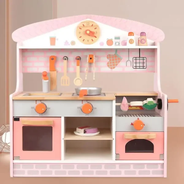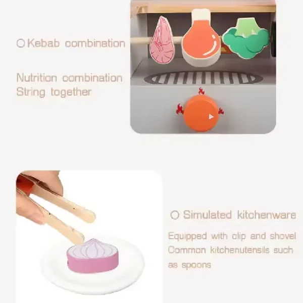 Bucătăria de Joacă cu Gratar din Lemn pentru Copii