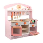 Concepută pentru a stimula creativitatea și abilitățile motorii fine, această bucătărie din lemn este un cadou ideal pentru orice copil pasionat de gătit și jocuri de rol.