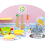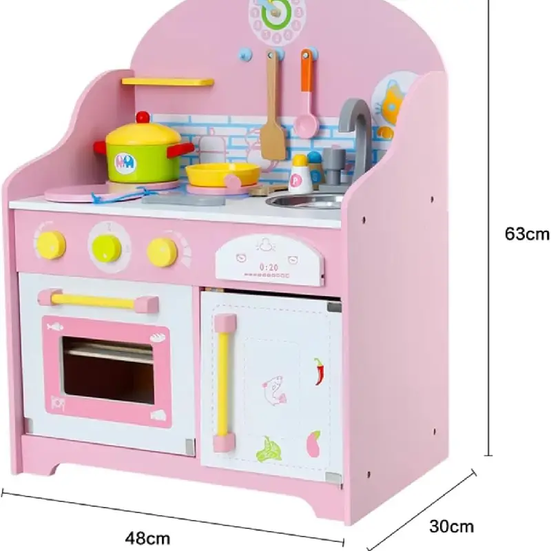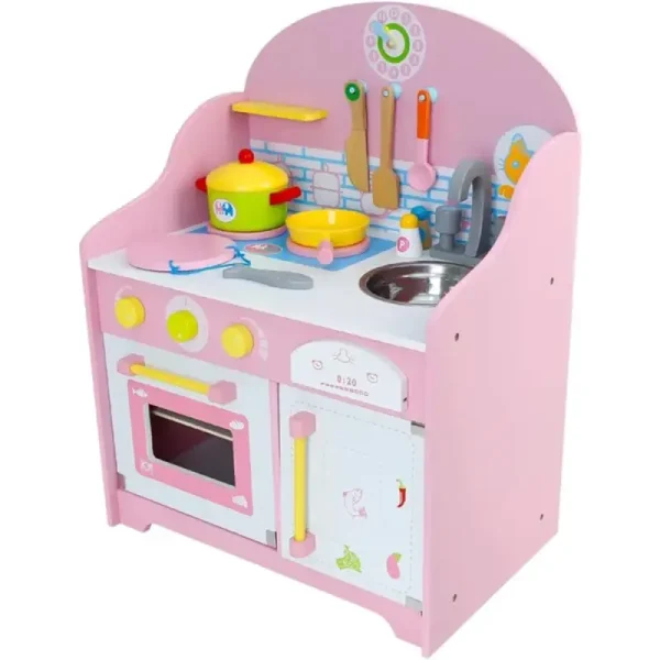 Bucatarie cu Accesorii din Lemn pentru Copii este o jucarie de rol,extrem de indragita de copii,in special de catre fetite.