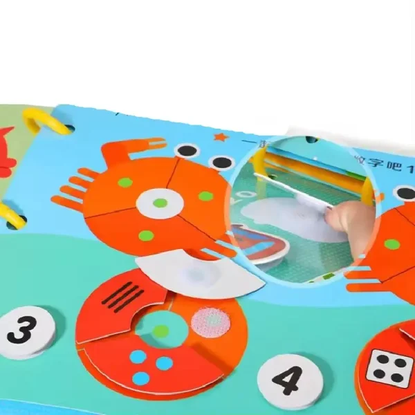 Busy Board Carte Senzoriala cu Stickere Reutilizabile permite copiilor să exploreze și să învețe pe cont propriu, dezvoltând independența și încrederea în sine.