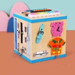 Dacă ești în căutarea unei jucării educative care să stimuleze curiozitatea naturală a copilului tău și să-l ajute să învețe prin explorare, acest cub interactiv din lemn este alegerea perfectă!