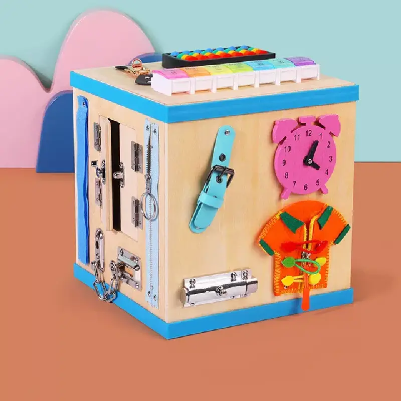 - Dezvoltă abilitățile motorii fine: Manipularea încuietorilor, fermoarelor și altor mecanisme antrenează micile mișcări de precizie, ceea ce ajută la îmbunătățirea coordonării mâna-ochi.