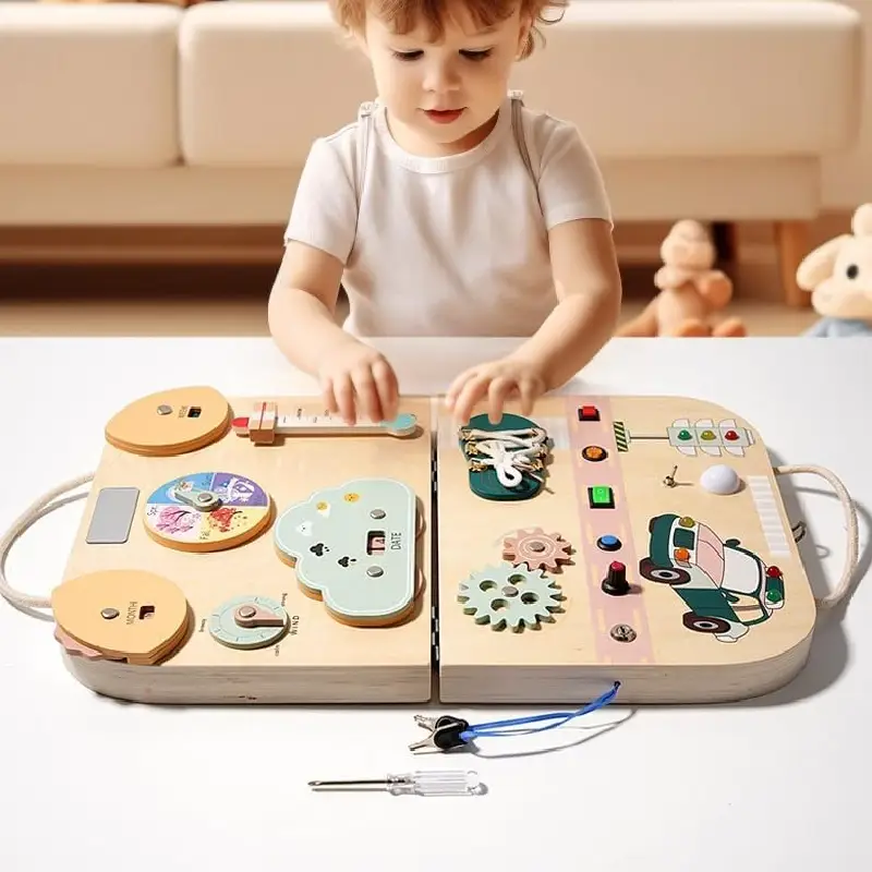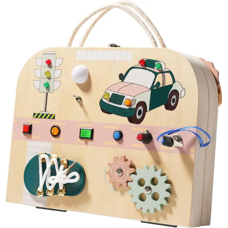 Busy Board Gentuta din Lemn cu Activitati Educative – Activități Educative și Distractive pentru Dezvoltarea Copiilor