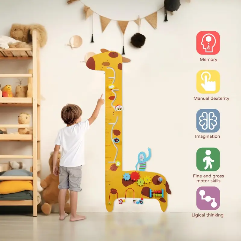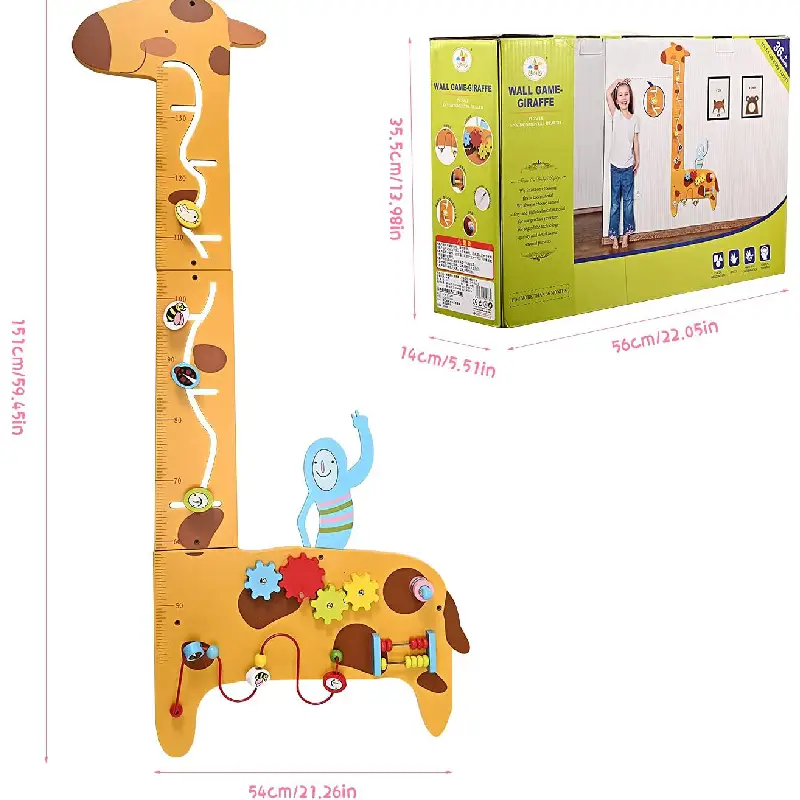 Comandă acum Busy Board Girafa Masuratoare Jucarie de Perete și transformă fiecare centimetru câștigat într-o amintire plăcută!