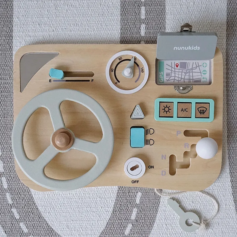 Placa Busy Board Montessori cu activități senzoriale marca Nununkids,din lemn, este o jucărie interactivă concepută pentru a stimula și dezvolta abilitățile senzoriale și motorii ale copiilor mici.