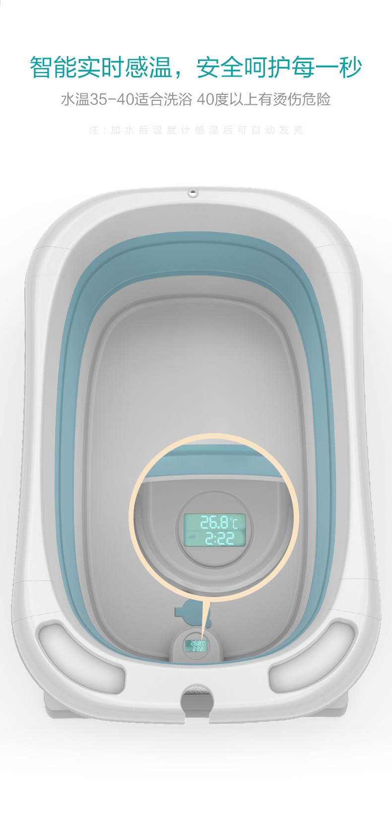 Cu ajutorul senzorului inteligent de temperatura, părinții nu își vor face niciodată griji cu privire la supraîncălzirea și răcirea temperaturii apei, deoarece o pot regla cu ușurință.