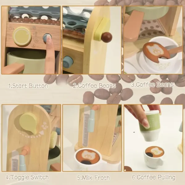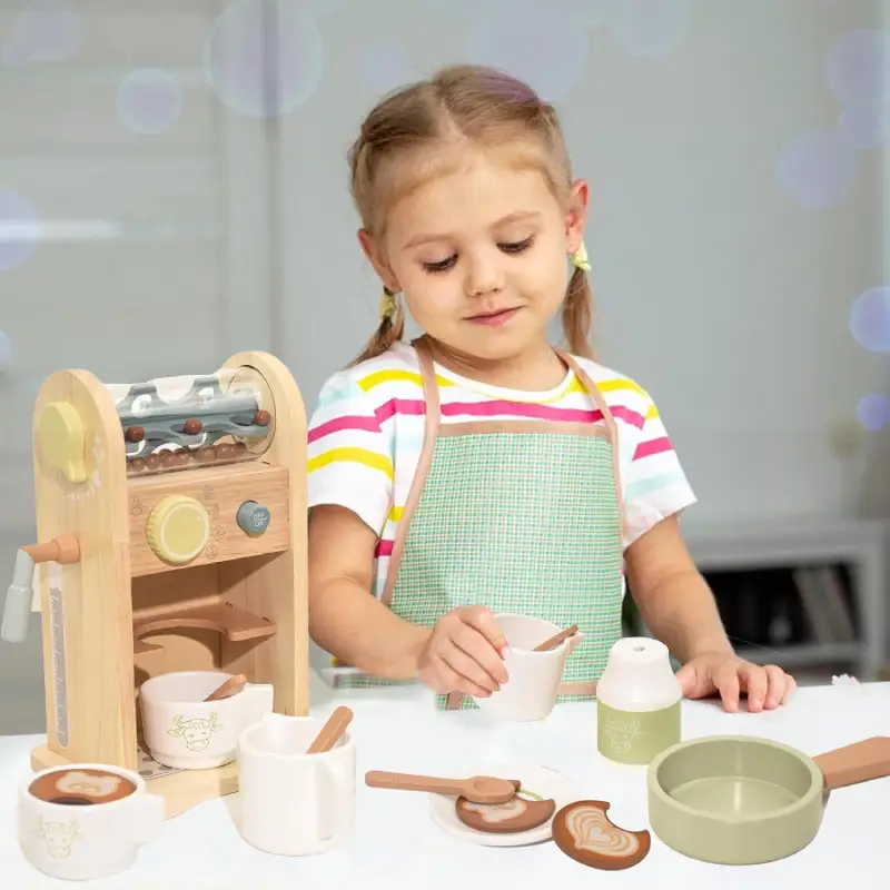 - Dezvoltarea abilităților motorii fine: Copiii pot utiliza ustensilele din lemn pentru a manipula cafetiera, ceea ce ajută la dezvoltarea abilităților lor motorii fine.