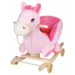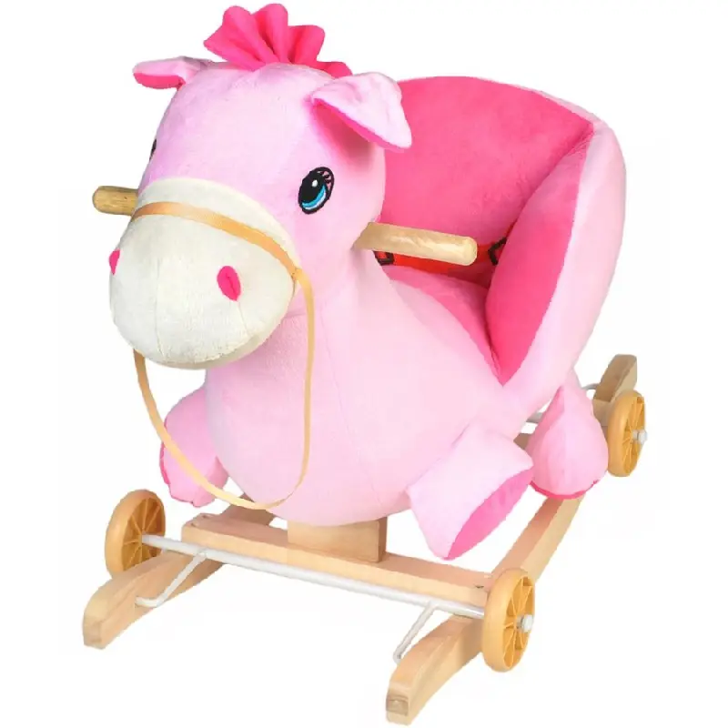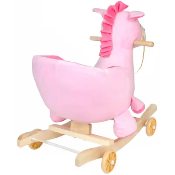 Calut Roz Balansoar Muzical pentru Copii – Jucărie Moale și Confortabilă cu Suport de Lemn și Roți pentru Mobilitate