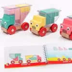 Descoperă Lumea Construcției cu Camioanele din Cuburi din Lemn – Joc de Asamblare și Dezvoltare a Logicii!