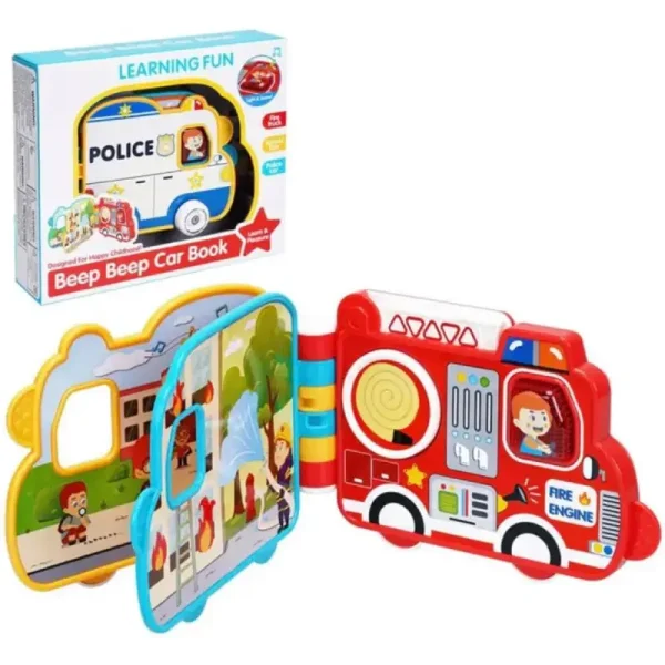 Cu formă de mașină, culori vii, sunete realiste și pagini interactive, micuțul tău va porni zilnic în noi aventuri pline de învățătură și emoție.