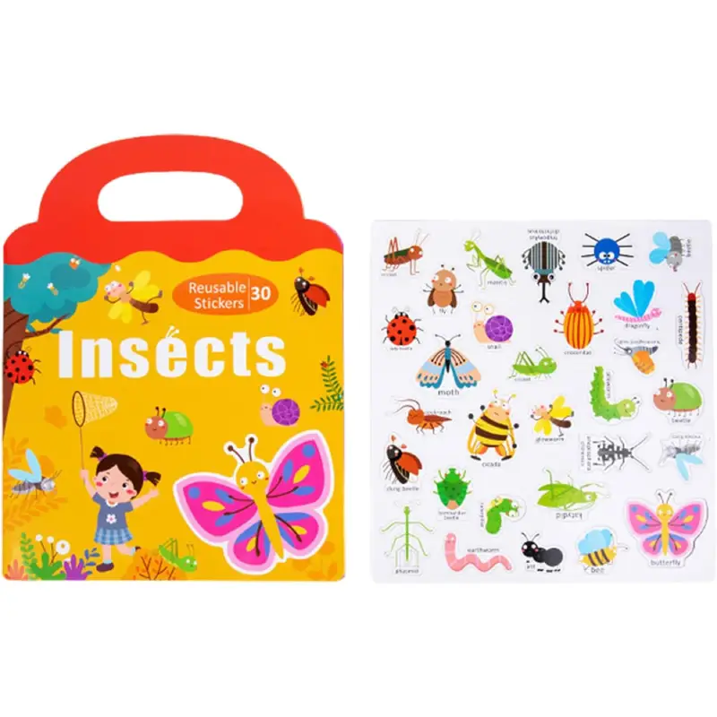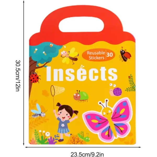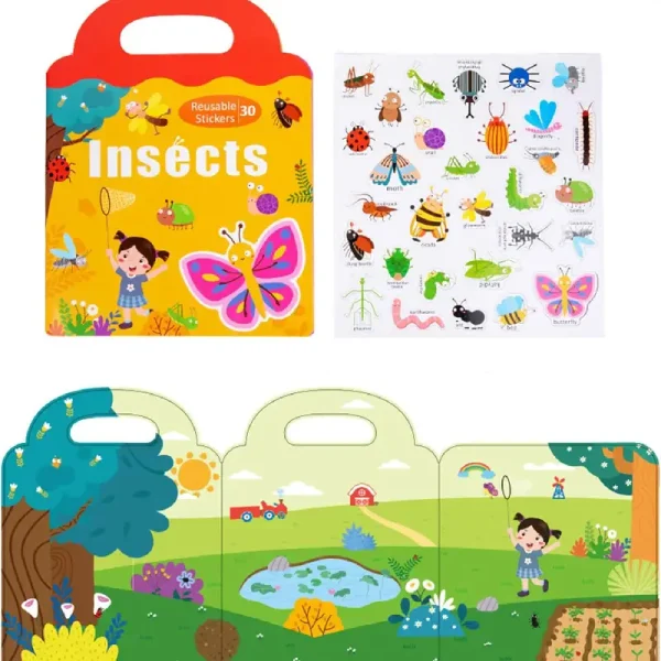 Carte Montessori Puzzle Magnetic cu Insecte contine 30 stickere reutilizabile.