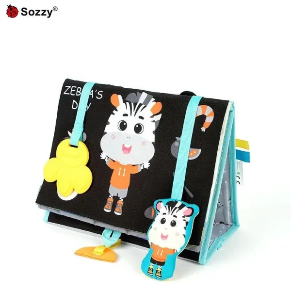 Carticica Textila Senzoriala Fosnaitoare pentru Bebe este special conceputa pentru a dezvolta simturile bebelusului prin texturi,culori si imagini.