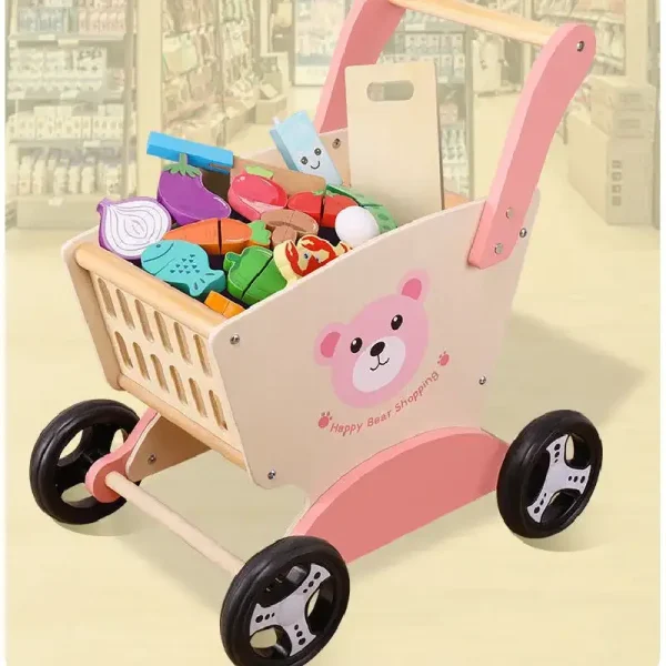 Carucior Alimente de Feliat Premergator Roz este o jucarie educativă și interactivă care reproduce o experiență realistă de cumpărături pentru copii.