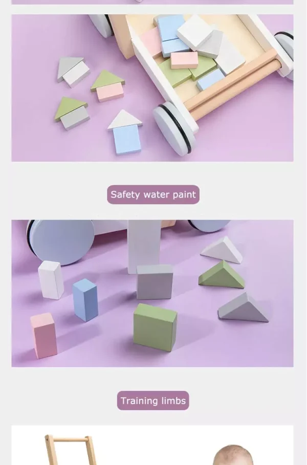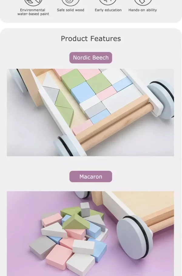 Caracteristici Carucior cu Cuburi Jucarie de Tras si Impins: