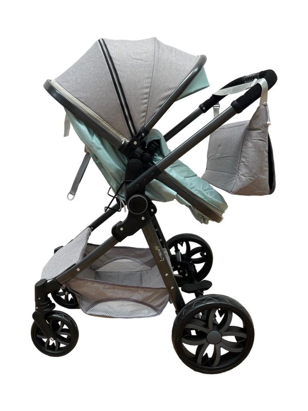 - Include compartiment de depozitare pentru a putea transporta ușor și organizat diferite obiecte necesare pentru copil, cum ar fi scutece, haine de schimb, jucării sau sticle cu apă,precum si o geanta.