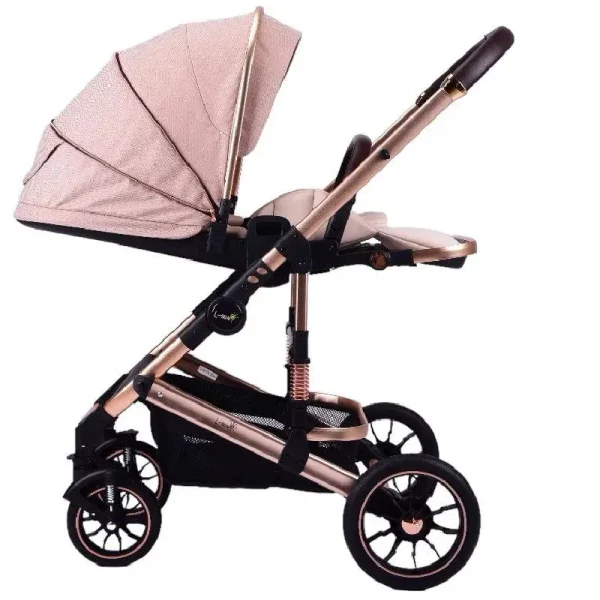 - Cadru Ușor și Durabil: Cadrul din aluminiu este robust și rezistent, dar suficient de ușor pentru manevrare facilă. Designul său elegant, în nuanțe de auriu roz, se remarcă prin rafinament și stil modern.