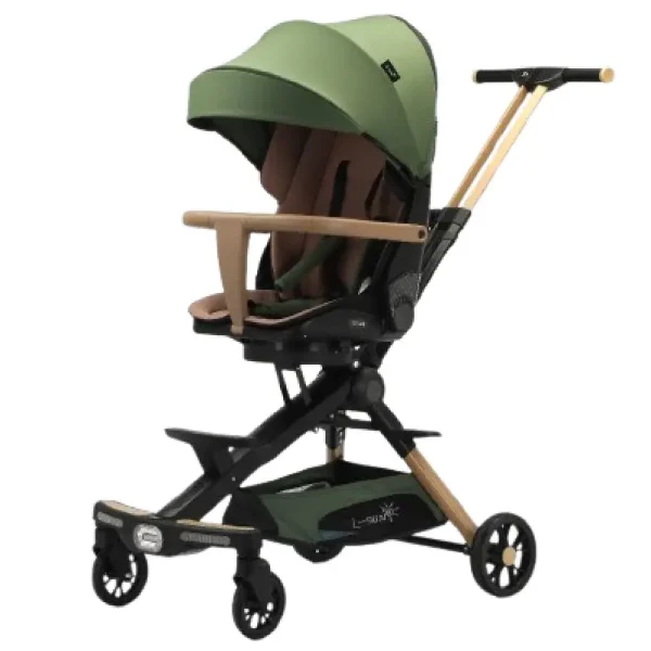Cu o nuanță verde sofisticat ce inspiră naturalețe și liniște, acest cărucior îmbină designul modern cu materiale premium, oferindu-ți libertatea să mergi oriunde – în parc, pe stradă sau în vacanță.