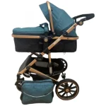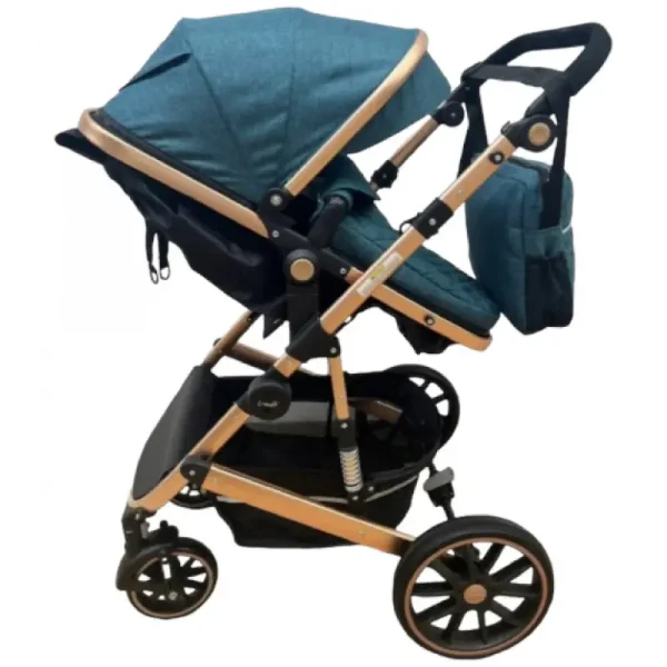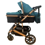 - Include compartiment de depozitare pentru a putea transporta ușor și organizat diferite obiecte necesare pentru copil, cum ar fi scutece, haine de schimb, jucării sau sticle cu apă,precum si o geanta.