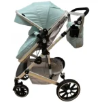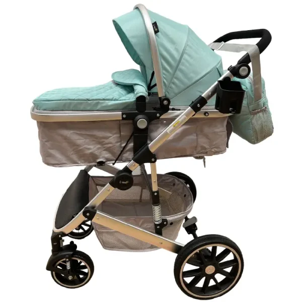 - Include compartiment de depozitare pentru a putea transporta ușor și organizat diferite obiecte necesare pentru copil, cum ar fi scutece, haine de schimb, jucării sau sticle cu apă,precum si o geanta.